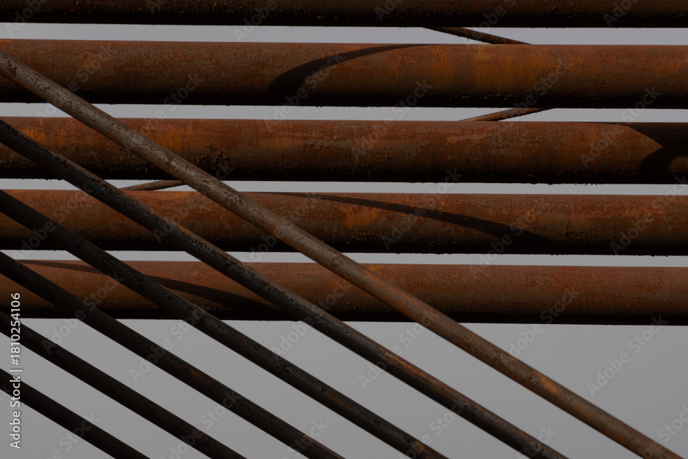 Plakat Architektura - Zardzewiałe rury mostu #1810254106