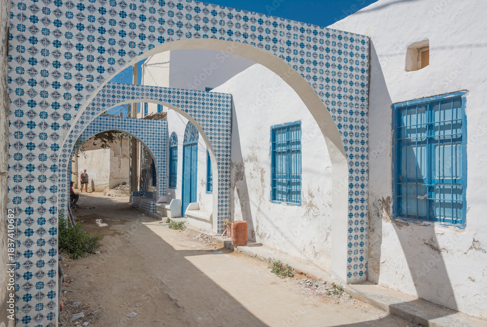 Plakat Architektura - ulica na Djerbie w Tunezji #1837410682