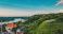 • Lśniący w słońcu Kazimierz Dolny latem, uchwycony z perspektywy drona.