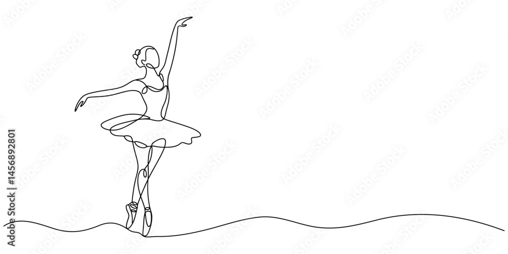 Plakat Balet - Ballerina dancer in continuous one line drawing. Single line art illustration of perfoming ballet... #1456892801