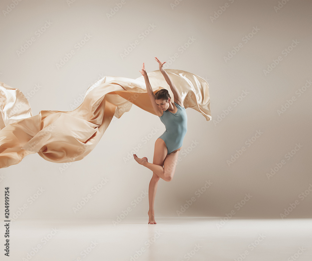 Plakat Balet - Modern ballet dancer dancing in full body on white studio background. #204919754