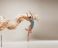 • Modern ballet dancer dancing in full body on white studio background.