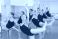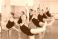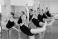 Plakat Balet - Young ballerinas training at ballet barre. Group of ballet dancers posing near barre in ballet... #423387618