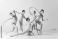 • Group of young women, ballerinas dancing, performing isolated over grey studio backgroun. Contemporary art ballet