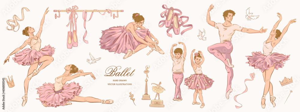 Plakat Balet - Hand drawn sketch ballet set. Vector illustration #606800545