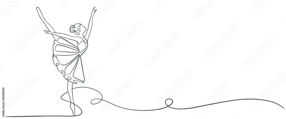 Plakat Balet - Continuous Line Art Drawing. Ballet Dancer ballerina. Vector Illustration #635181490