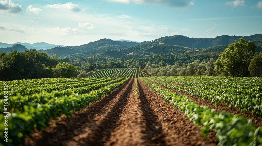 Plakat Farma - Colorful vegetable farm surrounded by mountains on a sunny day #1164452829