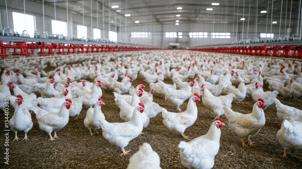 Plakat Farma - Large-scale poultry farm with automated feeding and processing equipment #1344103030