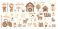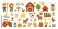 • A farm scene with a sign that says "Farm" in the foreground. There are several farm animals, including a horse, a cow, and a chicken. A tractor is also present in the scene