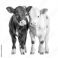• Baby cows stand together in a calm farm setting during daylight hours, Calm Companions Baby Cows Stand Together in a Farmyard ting.
