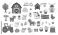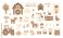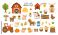 • A farm scene with a variety of animals and farm equipment. Scene is cheerful and playful, with the animals and farm equipment depicted in a whimsical and colorful way
