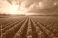Plakat Farma - Soybean plantation at sunset with intense clouds. Rural landscape showcases rows of cultivated... #1517197653