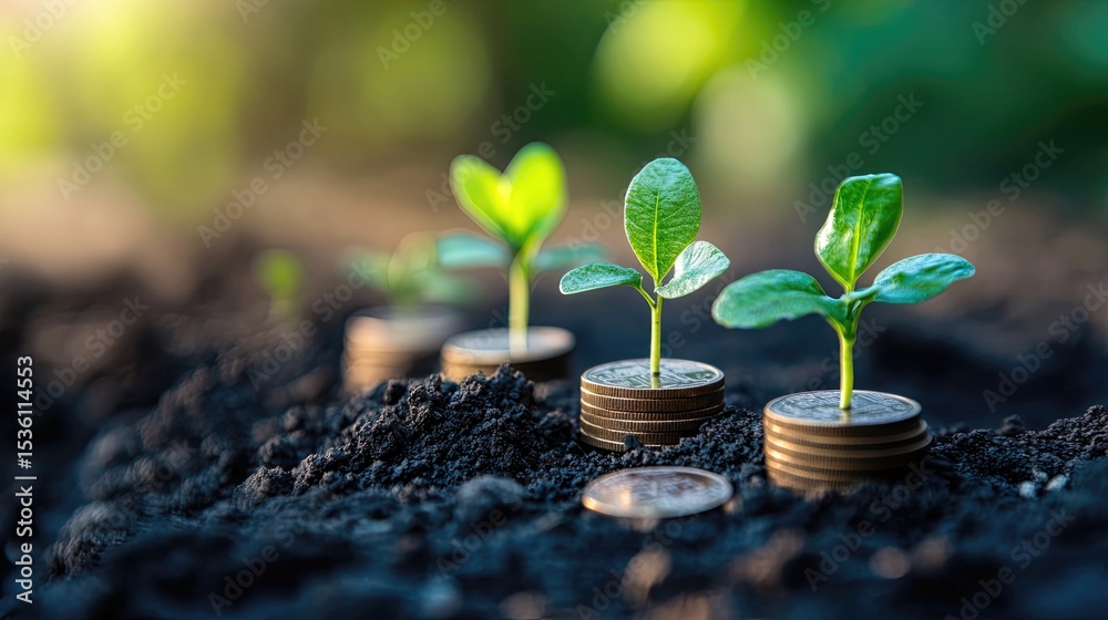 • Financial Growth Sprout Coins Investment Future Savings Success Wealth Planting Earning Income