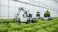 • Autonomous agricultural robots working in a smart farm greenhouse, harvesting lettuce. A futuristic concept of agritech, automation, and precision agriculture
