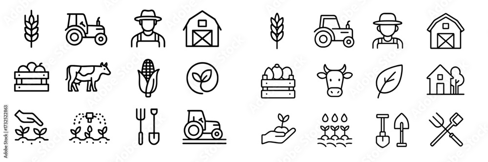 Plakat Farma - Collection of line icons illustrating farming activities and elements on a light background #1732522863