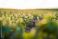 • Young soybean plant glowing in backlight on cultivated farmland at early growth stage