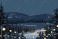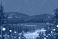 • A serene winter landscape showcasing a solar farm adorned with snow, twinkling lights, and a warm, inviting glow, evoking a peaceful New Year's spirit