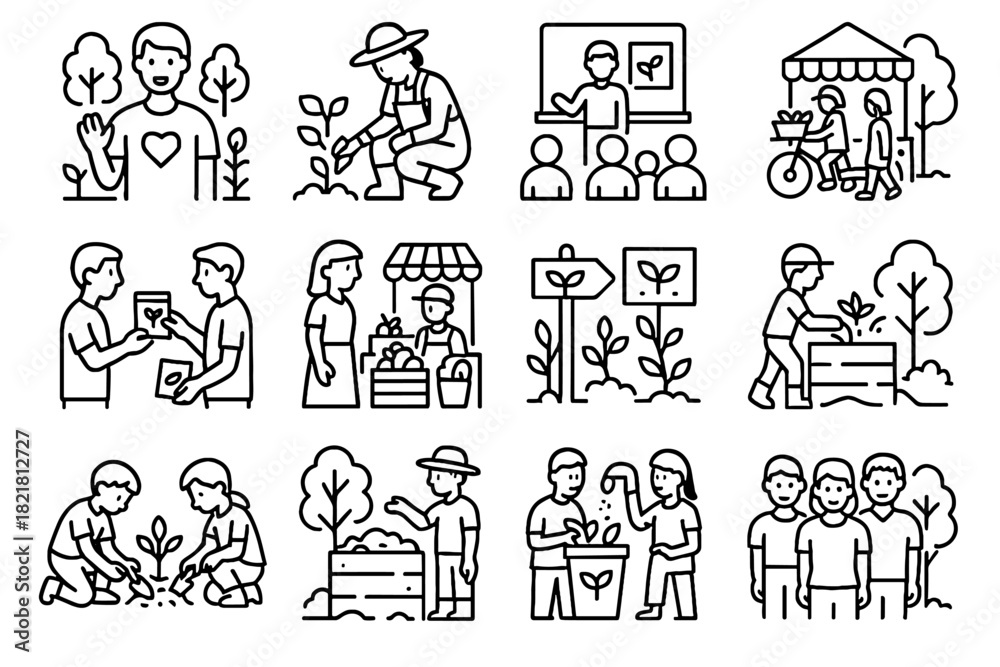 • Kids delivery planting workshop vector garden icons class farming volunteer urban icon