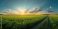 • Wide-angle scene of a vibrant soybean crop with a central dirt road, ideal for environmental or farming themes