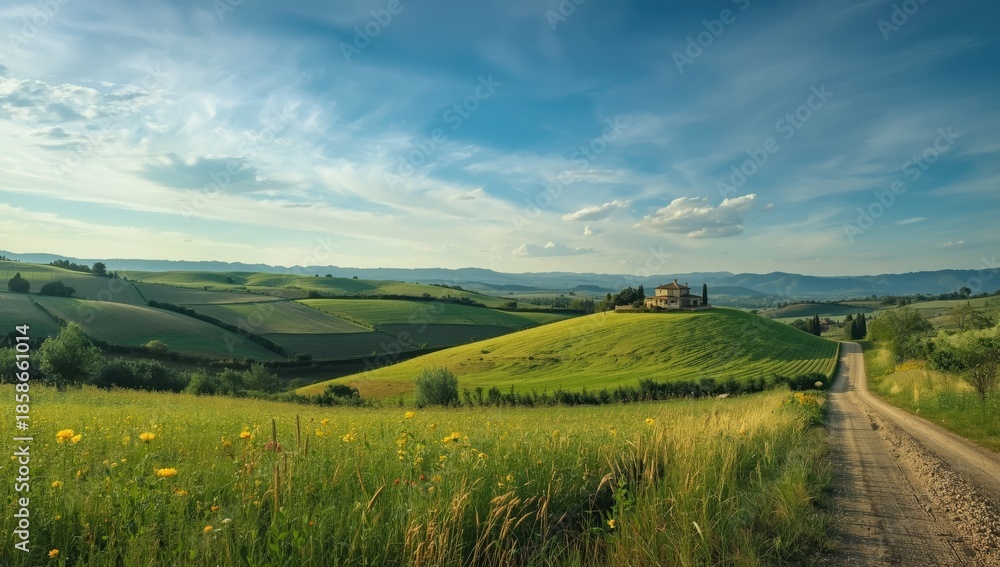 Plakat Farma - Open countryside of Crete Senesi featuring natural terrain and minimal development, ideal for... #1858661014