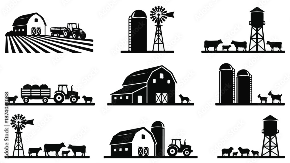 • Collection of farm and agriculture related black silhouettes