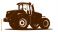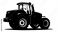 • Side view of a heavy-duty farm tractor illustration in a technical style, featuring solid black shapes with clean lines and high contrast, created in vector art with precise details, showcasing the ve