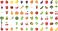 • Fresh fruits and vegetables illustration set with colorful healthy food icons, organic produce variety, nutrition elements, and farm market flat vector collection