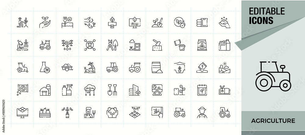 Plakat Farma - Agriculture line icon set. Harvest icon set. Collection of simple line web icons. Contains such... #1889631620