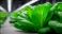 • Fresh romaine lettuce growing under artificial lights in a modern indoor vertical farm
