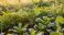 • Golden morning sunlight illuminates a lush organic garden, highlighting rows of fresh, healthy vegetables and green plants thriving in fertile soil, demonstrating sustainable farming