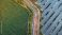 Plakat Farma - Fly over Solar cells farm beside nature green farm around large industrial factory area. Solar... #558874018
