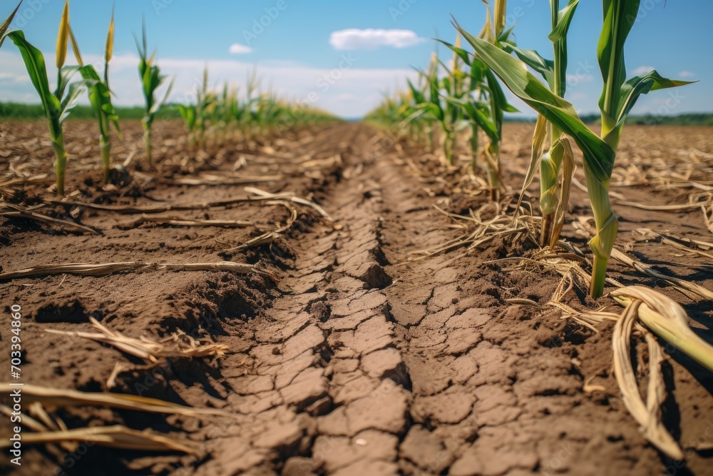 Plakat Farma - Drought Impact on Corn Field with Cracked Soil #703394860