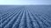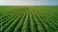• View of a vast soybean farm agricultural field with a blue sky background.
