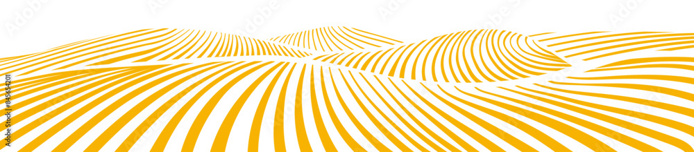 Plakat Farma - Farm field landscape on small hills. Furrows pattern in a plowed prepared for crops planting.... #845654201