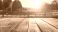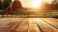 Plakat Farma - a close up of a rustic empty wooden table with blurred farm background #856845869