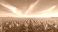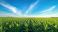 • Wide shot of lush green cornfields stretching to the horizon, with a bright blue sky and a few wispy clouds overhead.