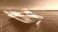 • Luxurious yacht speeds through tropical waters, scenic islands in background