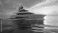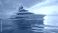 Plakat Jachty - Modern yacht sailing on ocean at sunset. Sky blends vibrant orange, pink, purple colors. Luxury... #1723314398