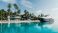 Plakat Jachty - Luxurious villa with palm trees and yacht. Private house on the island. Luxury yacht on the... #449834786