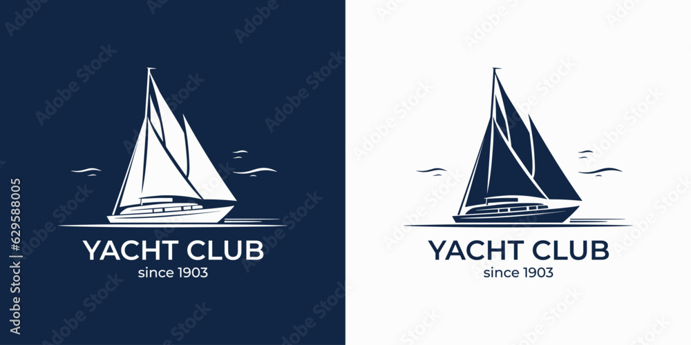 • Vector sailing boat yacht logo vector illustration isolated on white. Yacht club logotype