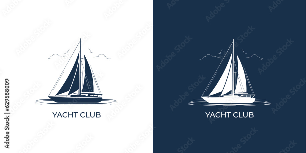 • Vector sailing boat yacht logo vector illustration isolated on white. Yacht club logotype