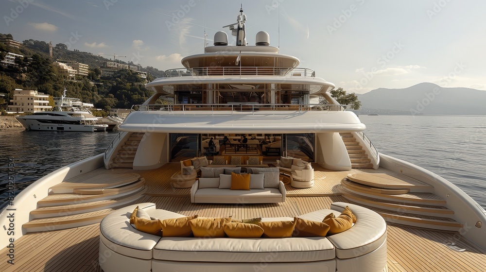 • Opulent yachting friends savoring champagne on luxurious deck with scenic views