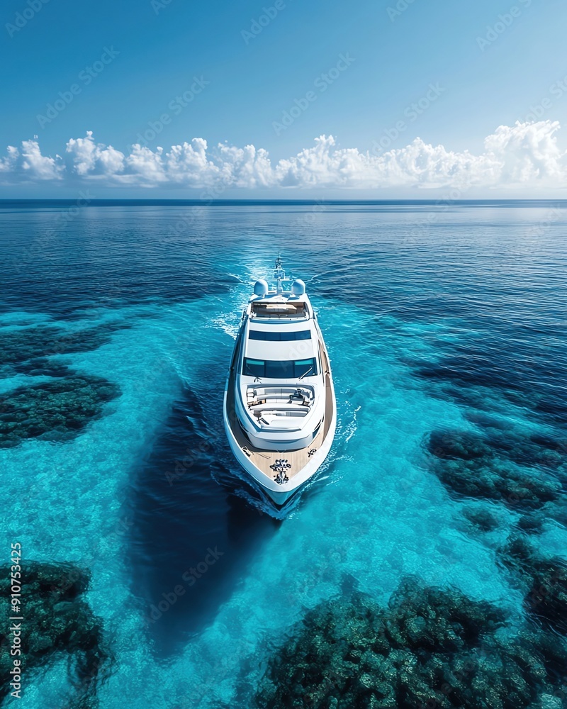 Plakat Jachty - Luxury yacht sailing on crystalclear waters, more clarity with clear light and sharp focus, super... #910753425