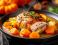 • Polędwiczki z indyka smażone z dynią, marchewką i cebulą, podlane bulionem