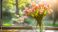 Plakat Kwiaty - tulipany, kwiaty, wazon, szkło, okno, drewniany parapet, naturalne światło, wiosna, przyroda,... #1017159639