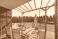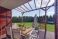 Plakat Kwiaty - Taras drewniany z białymi meblami ogrodowymi w domu jednorodzinnym – ogród #1461430581