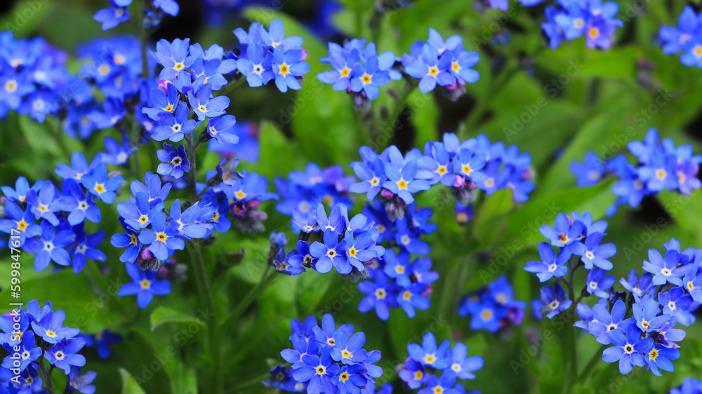 Plakat Kwiaty - Niebieskie niezapominajki kwitnące wiosną #599847617