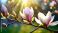 • Kwiaty magnolii pokryte kroplami wody. Wiosenne tło