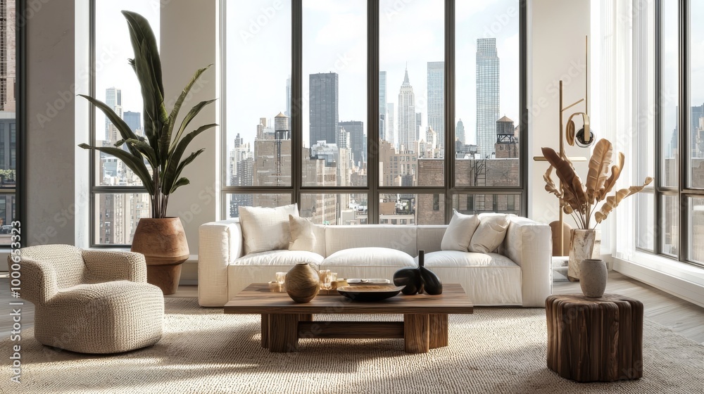 • a luxurious and stylish living room in a new york city appartement