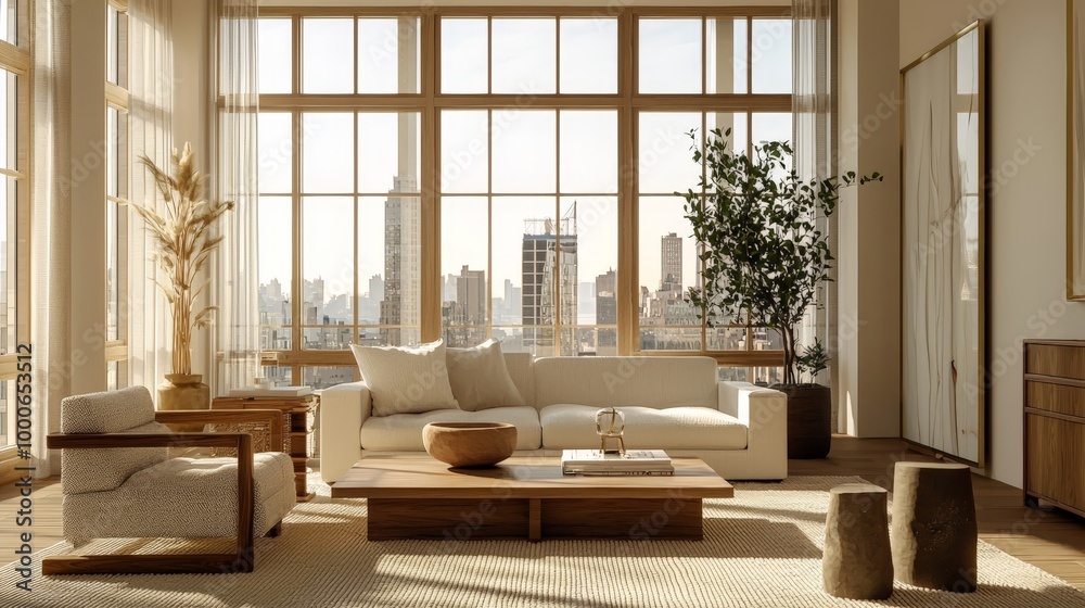 Plakat Nowy Jork - a luxurious and stylish living room in a new york city appartement #1000653512